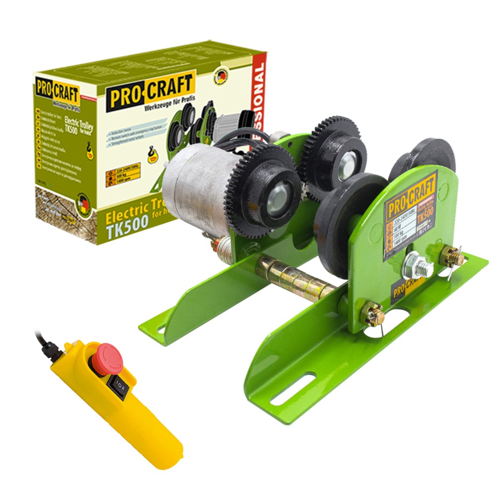 Електрична каретка для підйомника Procraft TK500, купити яку ви можете у нас, — це високотехнологічний пристрій, призначений для переміщення вантажів уздовж напрямної балки з мінімальними зусиллями. Вона легко інтегрується з електричними підйомниками та забезпечує ефективну роботу під час будівельних, монтажних і складських операцій. Завдяки високій вантажопідіймальності та надійній конструкції модель TK500 є незамінним помічником у промисловості та побуті. Де використовується електрична каретка для підйомника Procraft TK500 Каретку використовують у комплекті з підйомними механізмами на виробництвах, у автомайстернях, на складах, у будівництві, а також у приватних господарствах — усюди, де потрібно підіймати й переміщувати вантажі до 500 кг. Вона встановлюється на двотаврові балки моделей від 10 до 22 із шириною полиці 68–110 мм. Завдяки компактним розмірам та універсальному кріпленню TK500 легко адаптується до різних типів балок, а мінімальний радіус повороту — 1 м — дозволяє використовувати її навіть у приміщеннях з обмеженим простором. Переваги електричної каретки Procraft TK500 Потужність двигуна — 60 Вт, при цьому швидкість руху становить 16,4 м/хв, що забезпечує плавне пересування вантажу. Працює від мережі 220–240 В / 50 Гц, сумісна з побутовими та виробничими умовами. Витримує номінальне навантаження 500 кг, випробувальне — 600 кг, що підтверджує надійність і безпечність конструкції. Швидкість обертання двигуна — 1400 об/хв забезпечує точне керування переміщенням. Низький рівень шуму — 71 дБ(А) дозволяє використовувати пристрій у закритих приміщеннях. Ступінь захисту IP54 — захист від пилу та бризок. Клас ізоляції II — додаткова електробезпека. Чому варто замовити електричну каретку Procraft TK500 в нашому інтернет-магазині? Купуючи Procraft TK500 у нас, ви отримуєте оригінальний інструмент із гарантією якості. Ми забезпечуємо швидку доставку по всій Україні, професійний супровід, зручну оплату та доступні ціни. Наш магазин пропонує лише перевірену продукцію від надійного бренду Procraft. Електрична каретка для підйомника Procraft TK500, ціна якої вас приємно здивує, — це вигідне рішення для ефективного й безпечного переміщення вантажів. Замовляйте зараз на — швидко, надійно, з гарантією!