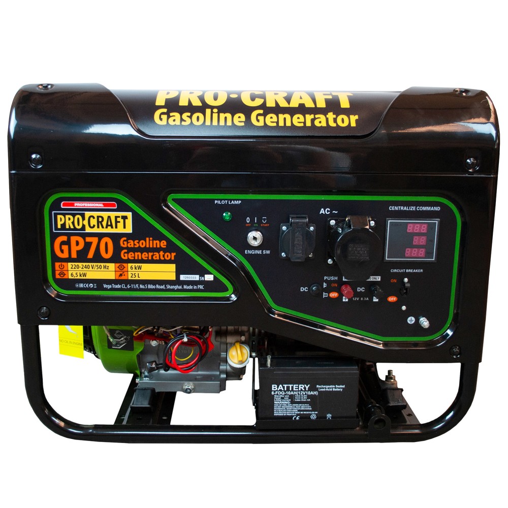 Генератор бензиновий Procraft GP70 підходить для резервного живлення дачі або будинку. Це незамінний пристрій у разі неполадок на лінії електромережі або інших проблем зі стаціонарною електрикою. Переваги моделі Висока потужність – до 6,5 квт. Цього вистачить одночасного використання до 10 електроприладів. Звичайно, все залежить від сумарної потужності пристроїв, ми орієнтуємось на середні показники. Бензинові установки швидко заводяться навіть за низької температури повітря. Низький рівень шуму та вібрації в порівнянні з аналогічними за потужністю пристроями – близько 80 дБ. Невелика ціна на бензиновий генератор Procraft GP70 – такі генератори коштують дешевше, ніж дизельні. Сфера застосування Генератор бензиновий Procraft GP70 купити можна для різних цілей: для резервного живлення будинку при перебоях зі світлом; для проведення ремонтних робіт у місцях без доступу до стаціонарної електрики; для використання електроустаткування поза приміщеннями (на природі). Як замовити Якщо ви вирішили замовити бензиновий генератор Procraft GP70, інтернет-магазин Прокрафт доставить його за кілька днів. Також ви можете вибрати будь-який зручний спосіб оплати товару (зокрема частинами), скористатися безкоштовною доставкою, тривалою гарантією на товар та іншими перевагами бренду Прокрафт.