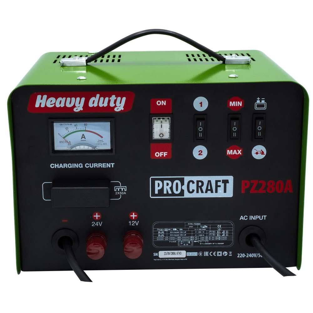 Пуско-зарядний пристрій Procraft PZ280A NEW, купити який ви можете у нас, — це універсальне та потужне рішення для обслуговування автомобільних акумуляторів. Завдяки продуманій конструкції та високій якості збірки, ця модель чудово справляється з заряджанням свинцево-кислотних акумуляторів, а також забезпечує надійний запуск двигуна навіть за умов глибокого розряду батареї. Де використовується пуско-зарядний пристрій Procraft PZ280A NEW Цей пристрій широко застосовується для обслуговування та запуску автомобілів, вантажівок, мотоциклів, тракторів та іншої техніки, оснащеної 12- або 24-вольтовими акумуляторами. Він незамінний у випадках, коли потрібно швидко відновити заряд акумулятора або запустити двигун при повному розряді. Procraft PZ280A NEW ідеально підходить для: використання на СТО та автомайстернях; фермерських господарствах і автопарках; особистого застосування водіями та автолюбителями; стоянках, гаражах і автомийках. Пристрій дозволяє заряджати акумулятори ємністю від 20 до 300 Аг, що робить його універсальним інструментом для роботи з різними типами транспорту та обладнання. Переваги пуско-зарядного пристрою Procraft PZ280A NEW Однією з ключових переваг моделі Procraft PZ280A NEW є потужність 1000 Вт, що забезпечує стабільну роботу навіть при інтенсивній експлуатації. Пристрій підключається до мережі з напругою 220–240 В та працює при частоті 50–60 Гц, що робить його сумісним з побутовими електромережами. Основні переваги пристрою: Два режими заряджання (12 В / 24 В) — для гнучкої роботи з акумуляторами різних типів та ємностей. Пусковий струм 280 А — забезпечує надійний старт двигуна в будь-яких умовах. Номінальний струм заряджання 20 А — дозволяє швидко відновлювати заряд батареї. Підтримка акумуляторів ємністю від 20 до 300 Аг — широкий діапазон застосування. Захист від перезарядження та неправильної полярності — гарантує безпеку користувача та акумулятора. Підтримка свинцево-кислотних акумуляторів — найбільш поширений тип у транспортних засобах. Зручність в експлуатації та перенесенні — компактний форм-фактор і інтуїтивно зрозумілий інтерфейс керування. Чому варто замовити пуско-зарядний пристрій Procraft PZ280A NEW в нашому інтернет-магазині? Обираючи Procraft PZ280A NEW в інтернет-магазині Procraft.ua, ви отримуєте не лише якісне обладнання, а й професійне обслуговування. Ми пропонуємо: Оригінальний товар з гарантією якості Доступні ціни та акції на популярні моделі Швидку доставку по Україні та зручні способи оплати Кваліфіковану консультацію з підбору обладнання та його використання Сервісне обслуговування та підтримку на всіх етапах експлуатації пристрою Пуско-зарядний пристрій Procraft PZ280A NEW, ціна якого вас приємно здивує, — це розумна інвестиція у надійну роботу вашого транспорту в будь-яку пору року. Замовляйте прямо зараз і забезпечте своєму акумулятору довгий термін служби та безперебійну роботу!